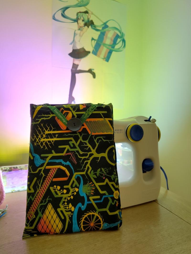 I had ordered some of the fabric and decided to use it to make a laptop sleeve first of all. You can see the results in the photo below: