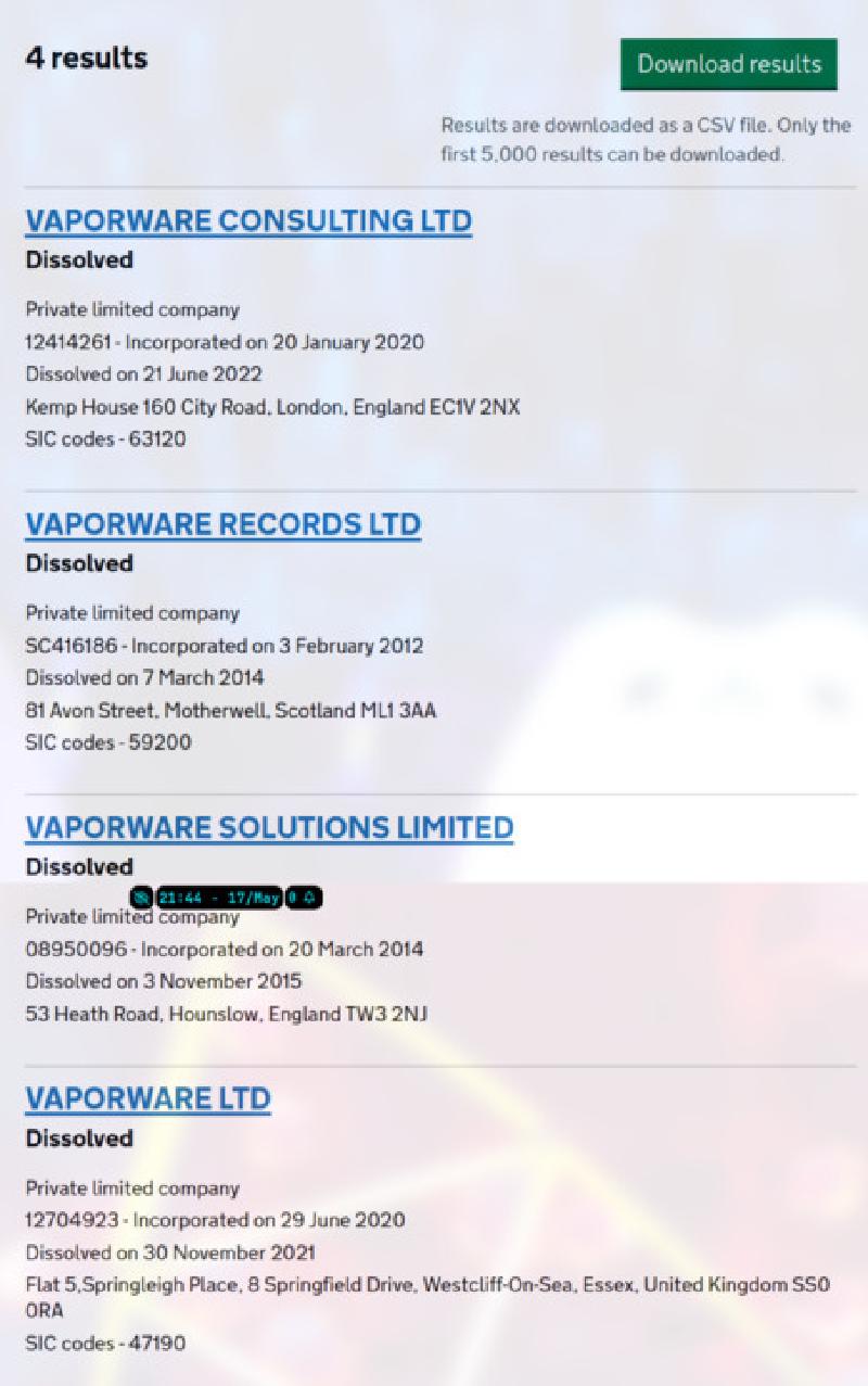 It turns out that there were several, in the UK at least, but there aren’t any right now - allegedly. Here’s what Companies House has to say: